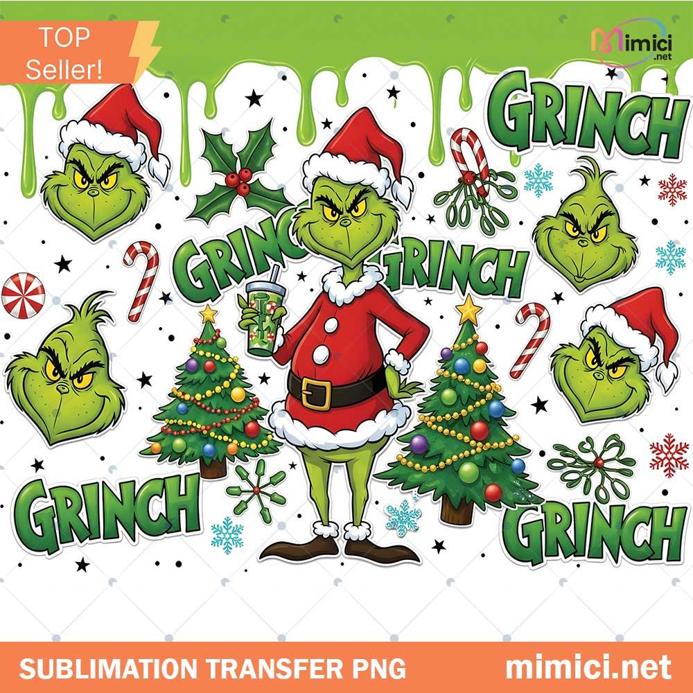 3D Inflated Grinch Christmas 20 Oz Skinny Tumbler Png, Christmas 20oz Tumbler Wrap Png, Christmas Movies Png
