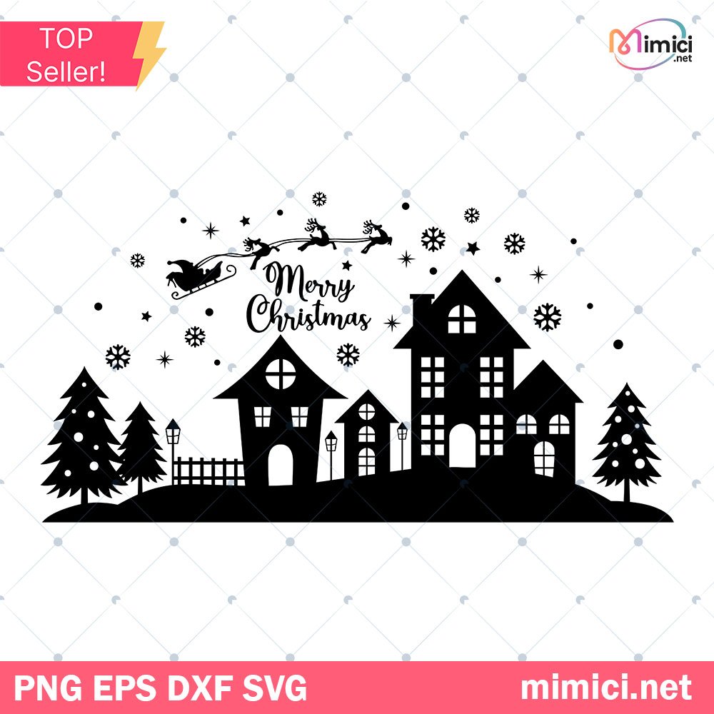 Christmas Scene Svg, Santa Claus Sleigh Christmas Scene SVG Bundle Cut File