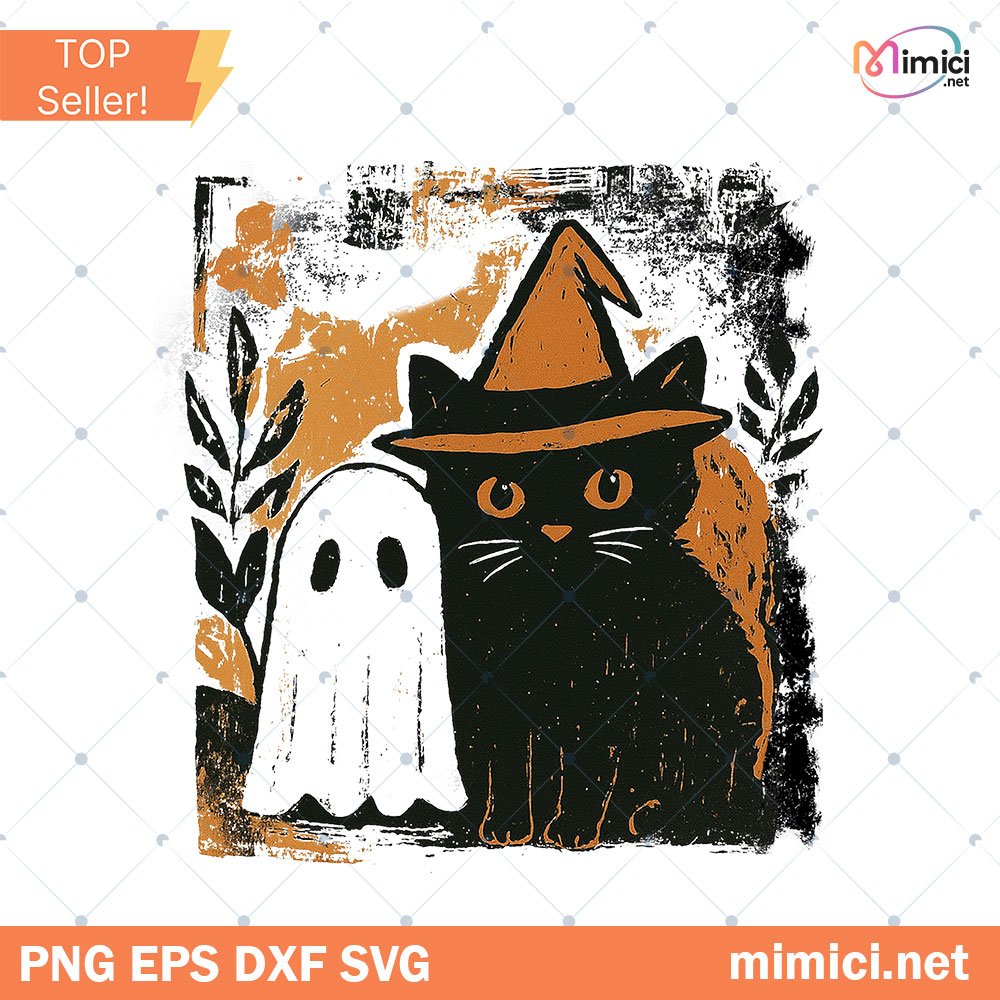 Cute Fall Black Cat Ghost Png, Halloween Spooky Season png