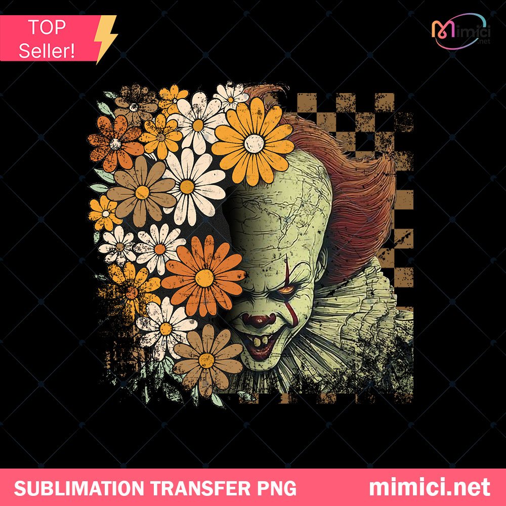 Halloween Pennywise PNG, Retro Killer PNG Sublimation, Vintage Mask Killer Floral PNG, Horror Movie PNG, Halloween shirt