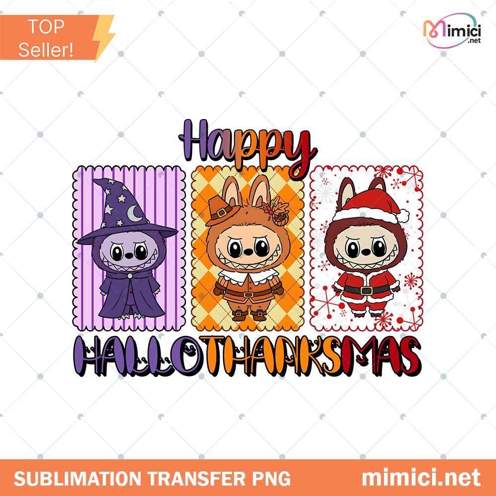 This item: Happy Hallothanksmas Labubu Png, Halloween Png, Thanksgiving Png, Christmas Png, Hallothanksmas Png, Christmas Characters Png