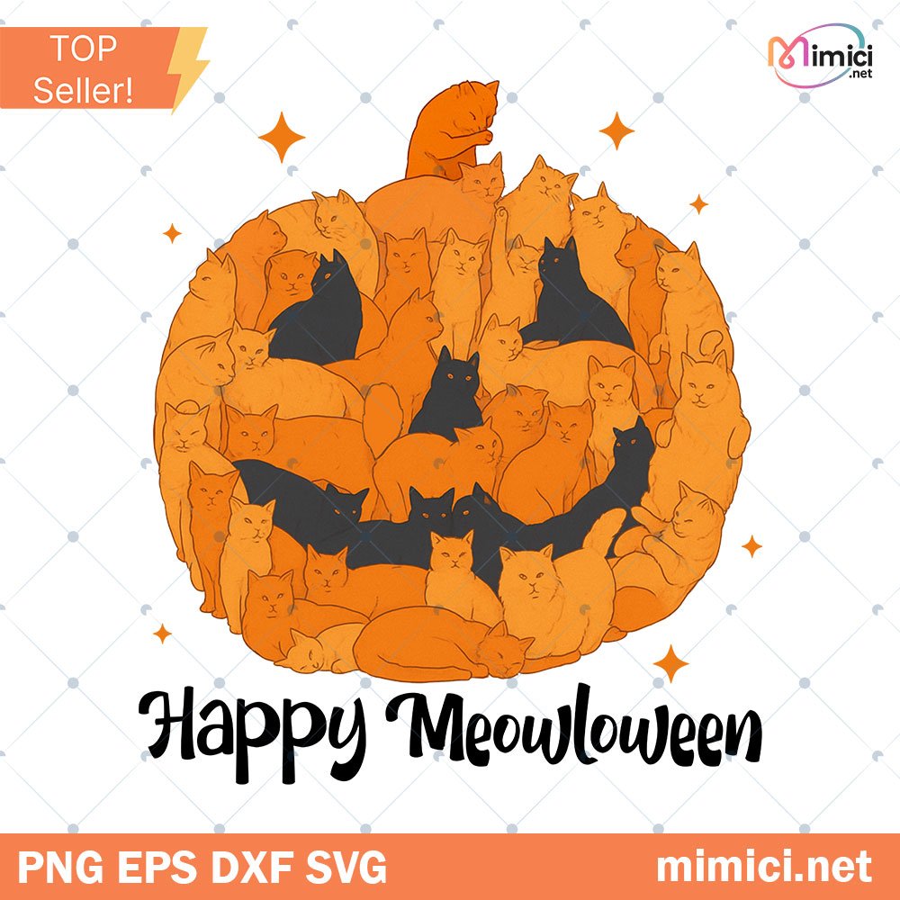 Happy Meowloween Png, Fall Cat Pumpkin Png