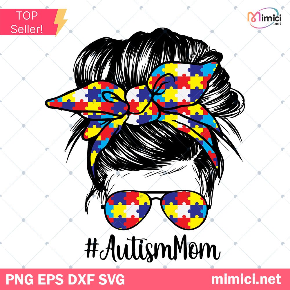 Messy Bun Hair Autism Mom SVG, Autism Sunglasses Hairband SVG, Autism Mom SVG, Autism Awareness SVG