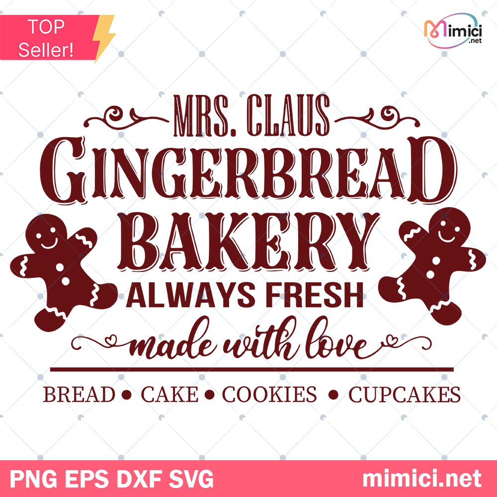 Mrs Claus Gingerbread Bakery Sign SVG, Christmas SVG, Bread Cookies Cupcakes Cake SVG PNG DXF EPS Vector Clipart