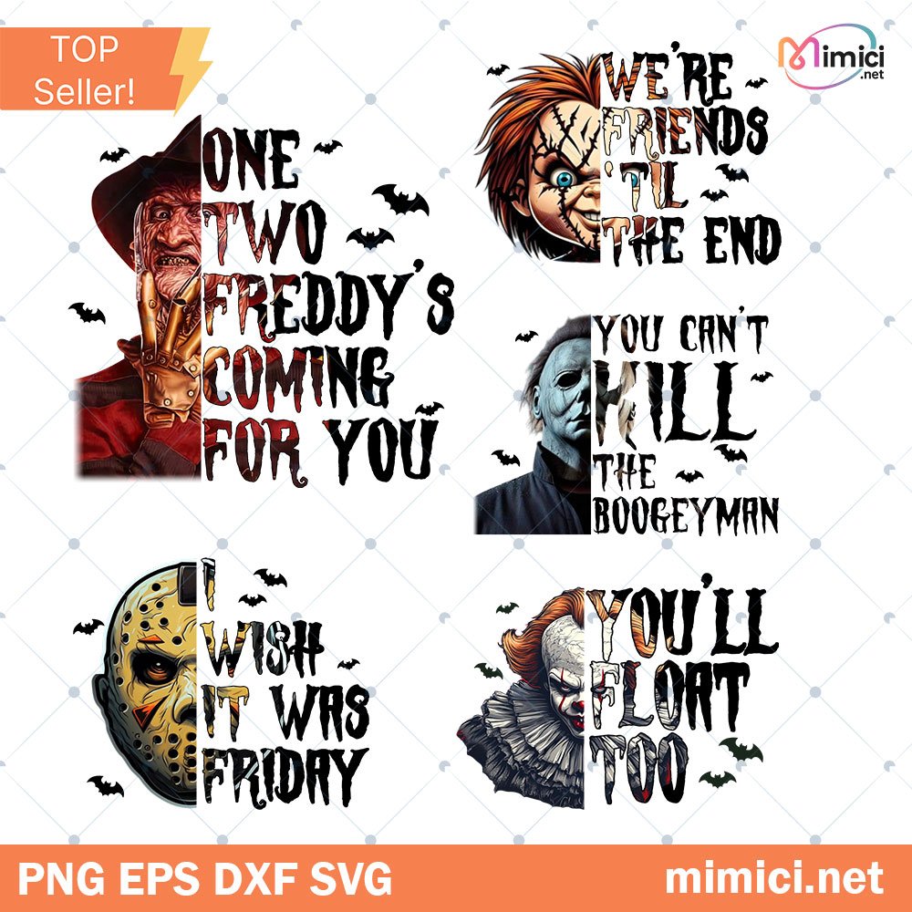 Pack 5 Horror Characters Png Bundle, Horror Friends Png, Halloween Horror Characters