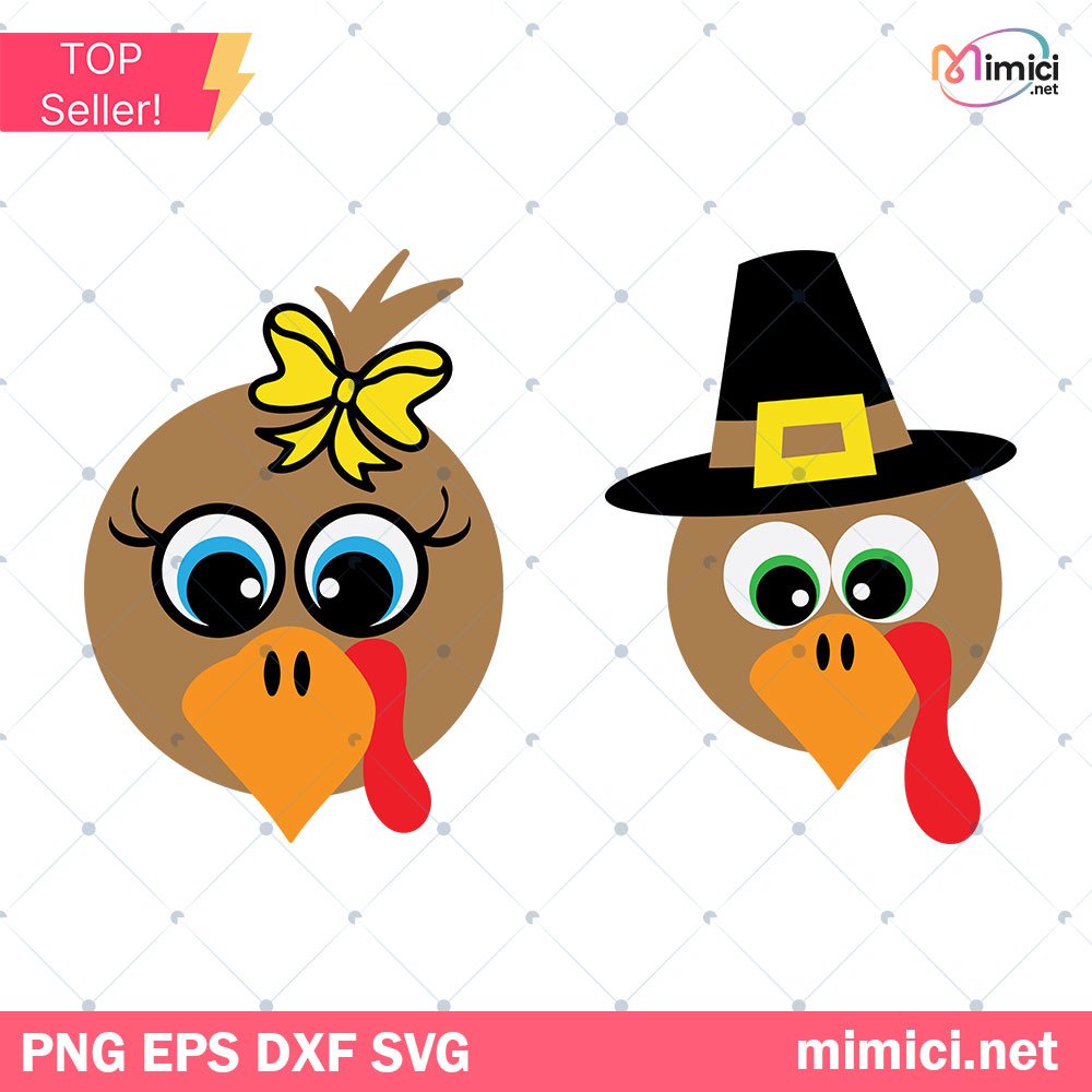 Turkey Face SVG Bundle, Turkey SVG, Boy Turkey SVG, Girl Turkey SVG, Thanksgiving SVG, Turkey Face SVG, Turkey Shirt