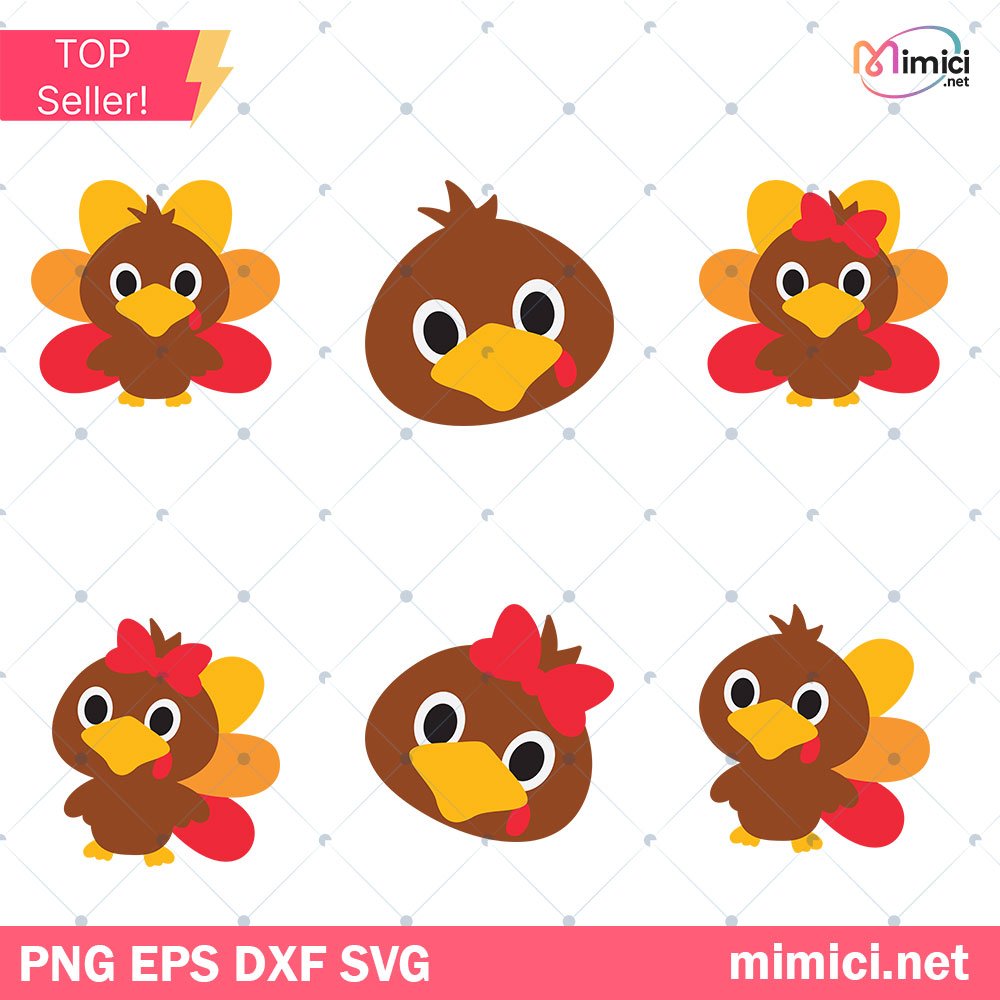 Turkeys SVG Bundle, Baby Turkey SVG PNG Clipart, Boy Girl Turkey SVG, Turkey Face SVG, Thanksgiving Turkey SVG